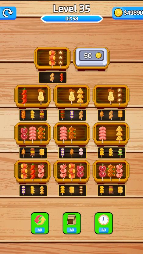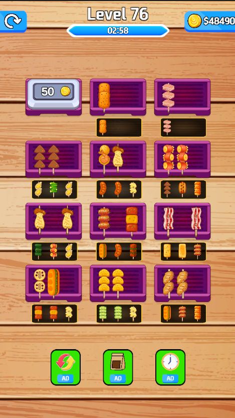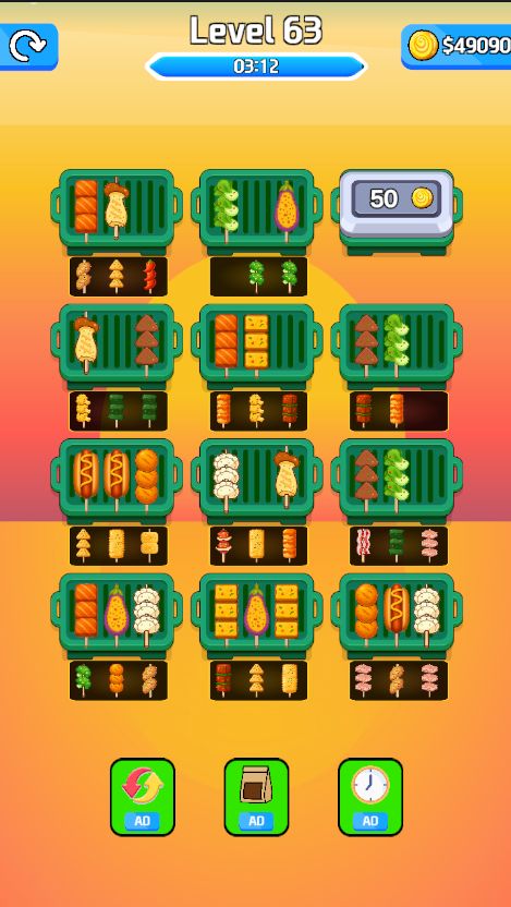 π§© 350+ Engaging Levels: A massive content library ensures players stay engaged with BBQ Grill Food Sort Puzzle for weeks, offering progressive difficulty and satisfaction.