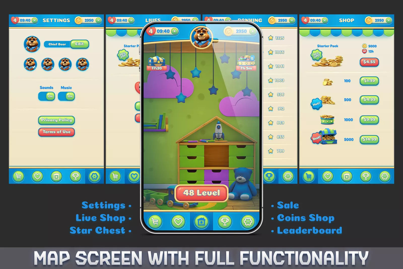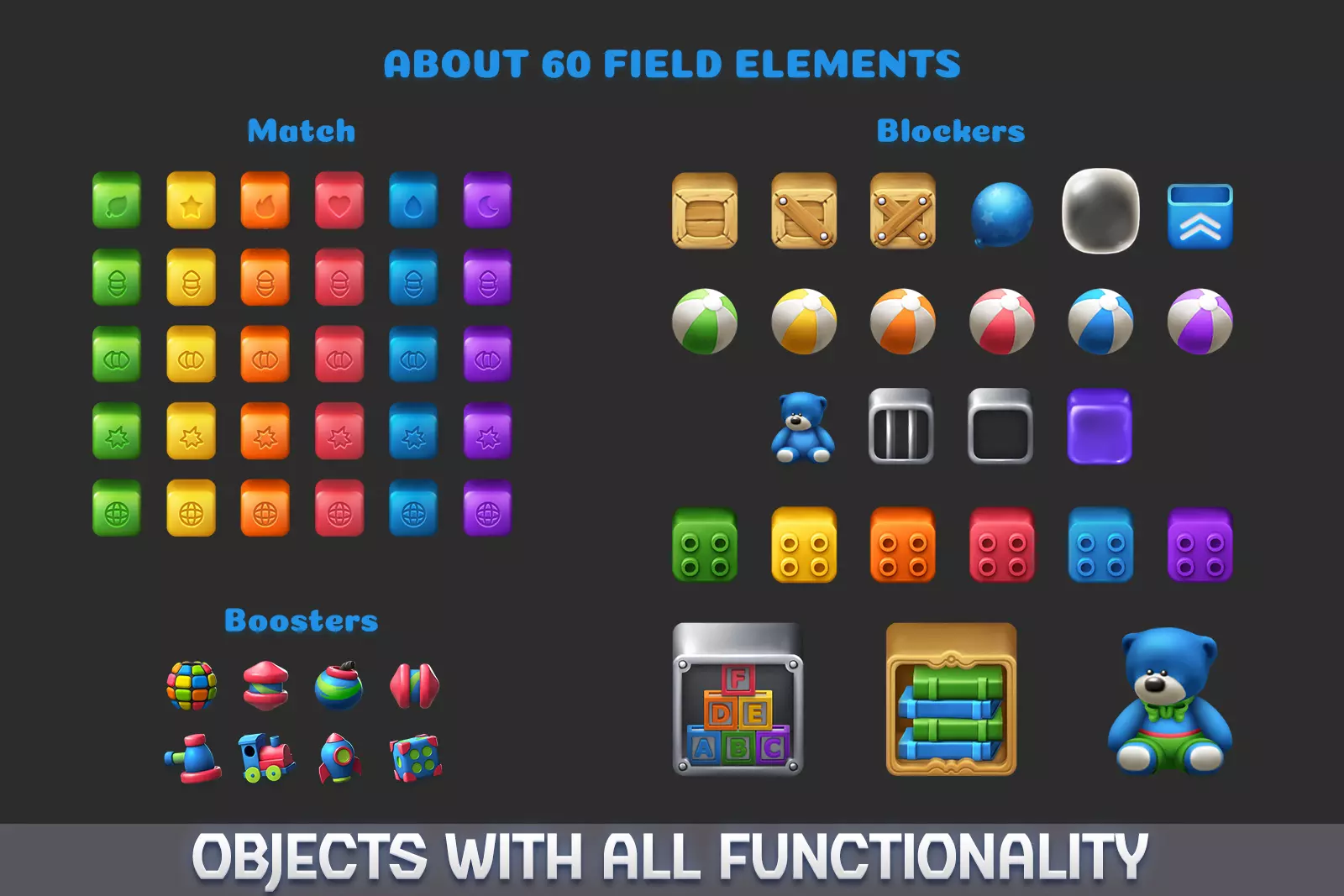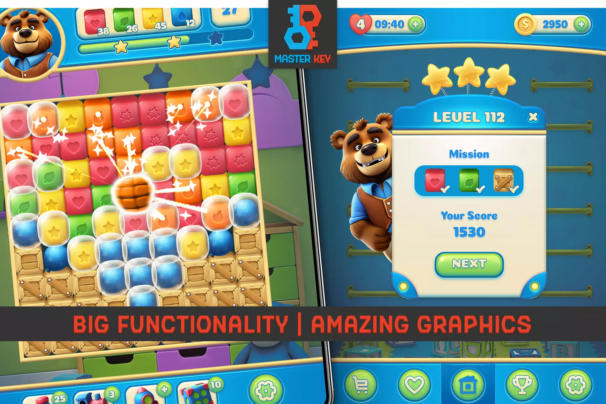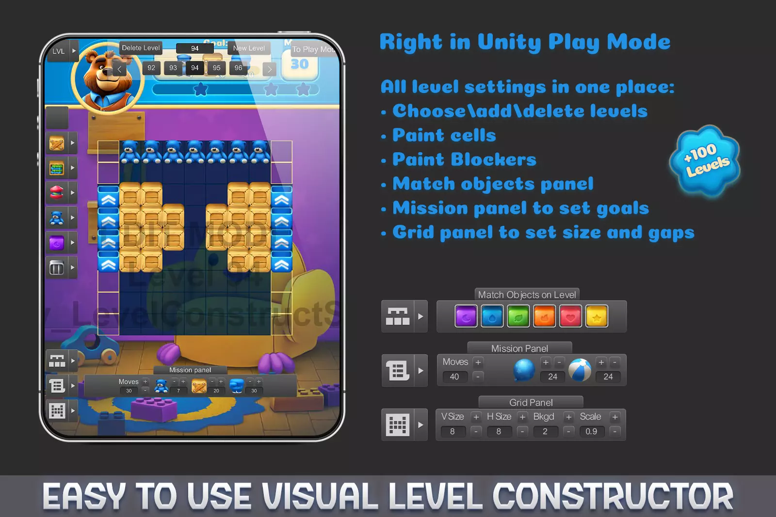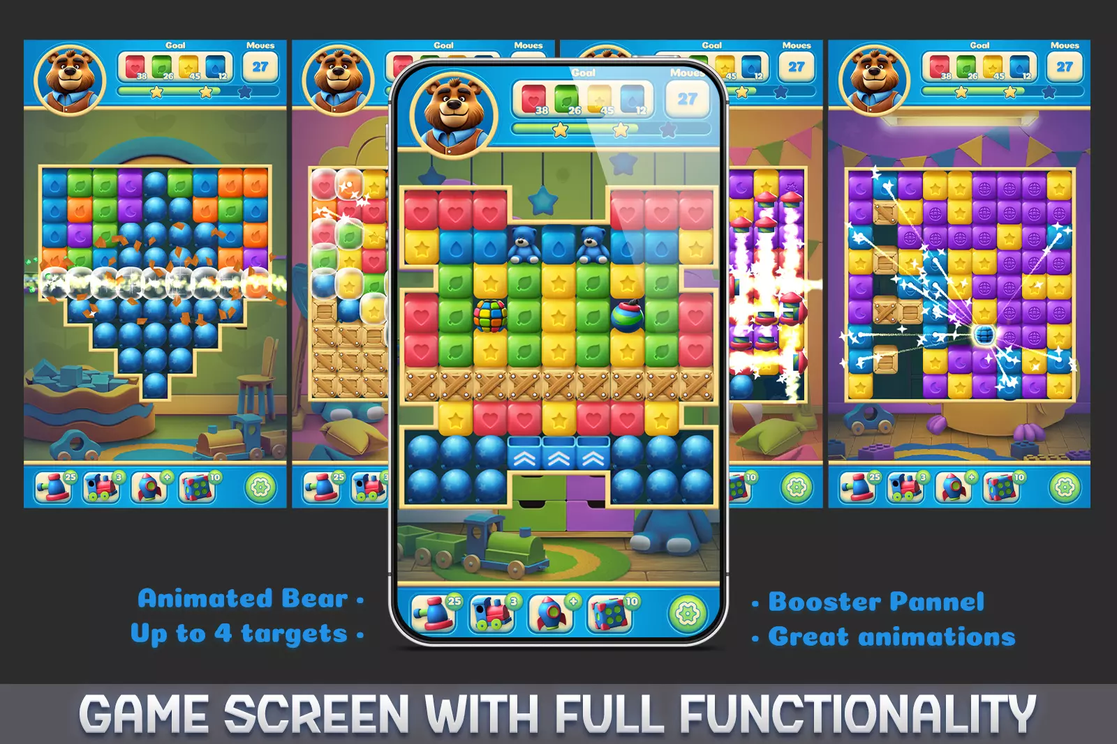 Blast Logic Match 2 simplifies the entire game development process by providing a ready-to-use framework with: